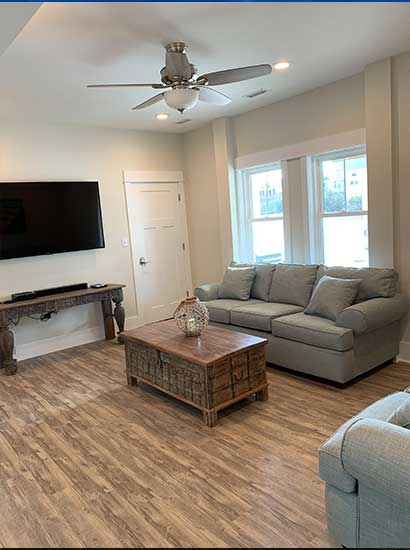 The bedrooms offer a peaceful retreat with comfortable bedding, stylish décor, and ample space for relaxation. Designed to accommodate families and groups, each room provides privacy and convenience, with select rooms featuring private baths and balcony access for a serene coastal stay experience.